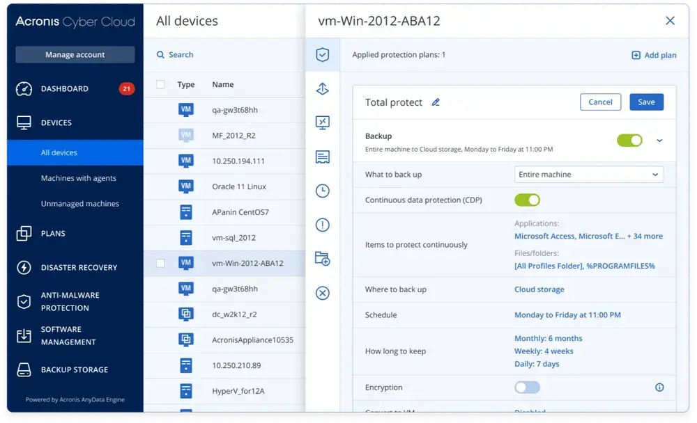 Yedekleme, siber güvenlik, iş yükü izleme ve yönetimini entegre eden tek bir çözümle koruma yönetiminizi...